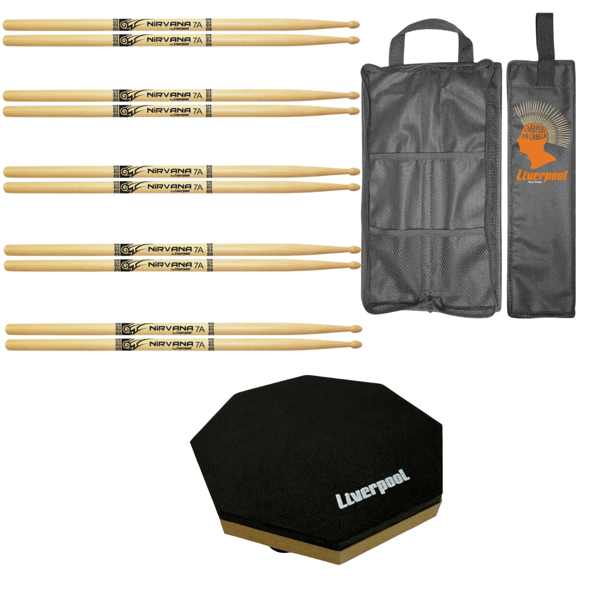 As baquetas 7A em Marfim são mais finas e leves, proporcionando um controle excepcional para Jazz, Bossa Nova e ritmos acústicos. O Pad de Estudo de 6 polegadas possui rebote realístico, permitindo treinar rudimentos de forma silenciosa e eficiente. Para complementar, o Bag Liverpool garante que você transporte seus 5 pares e o pad com total organização e segurança profissional.