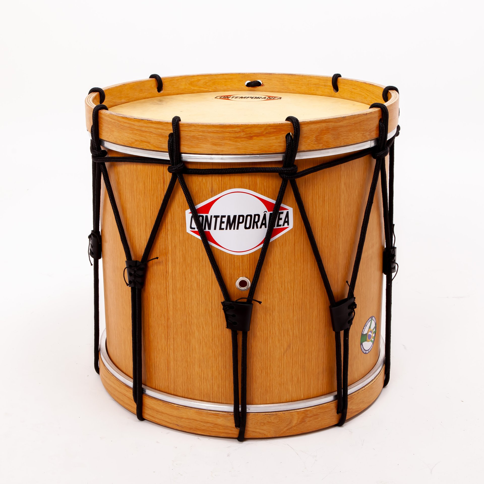 Este modelo profissional de 20 polegadas de diâmetro e 40cm de altura possui corpo em madeira resistente e peles de couro natural em ambas as extremidades. A afinação é feita por sistema de cordas (rope tuning), garantindo estabilidade e timbre autêntico.