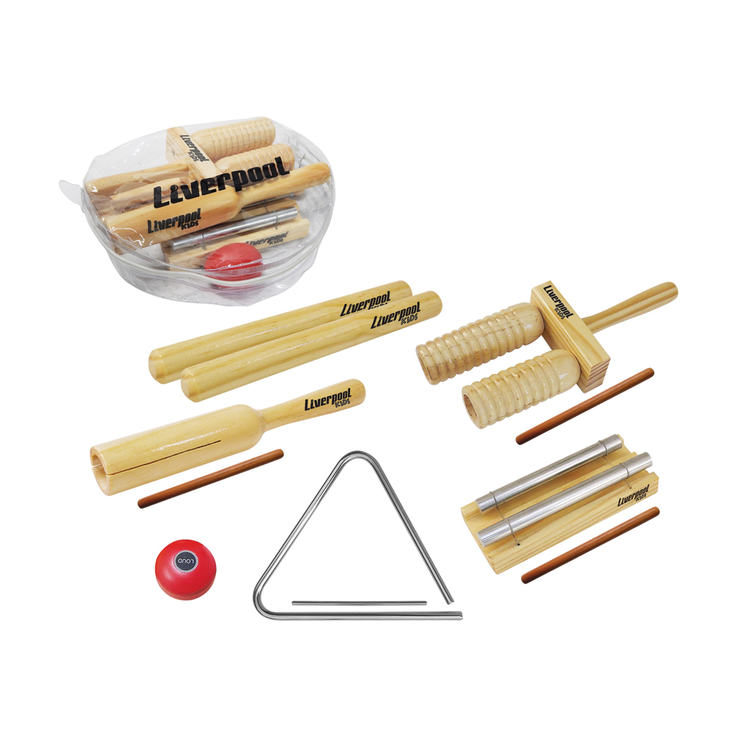 A Bandinha Rítmica Infantil Liverpool é o kit ideal para iniciar as crianças no mundo da música. Composta por 6 instrumentos percussivos lúdicos, é fácil de usar e seguro para os pequenos. Além disso, acompanha uma mochila, permitindo que seja levada para qualquer lugar com facilidade e conforto.
