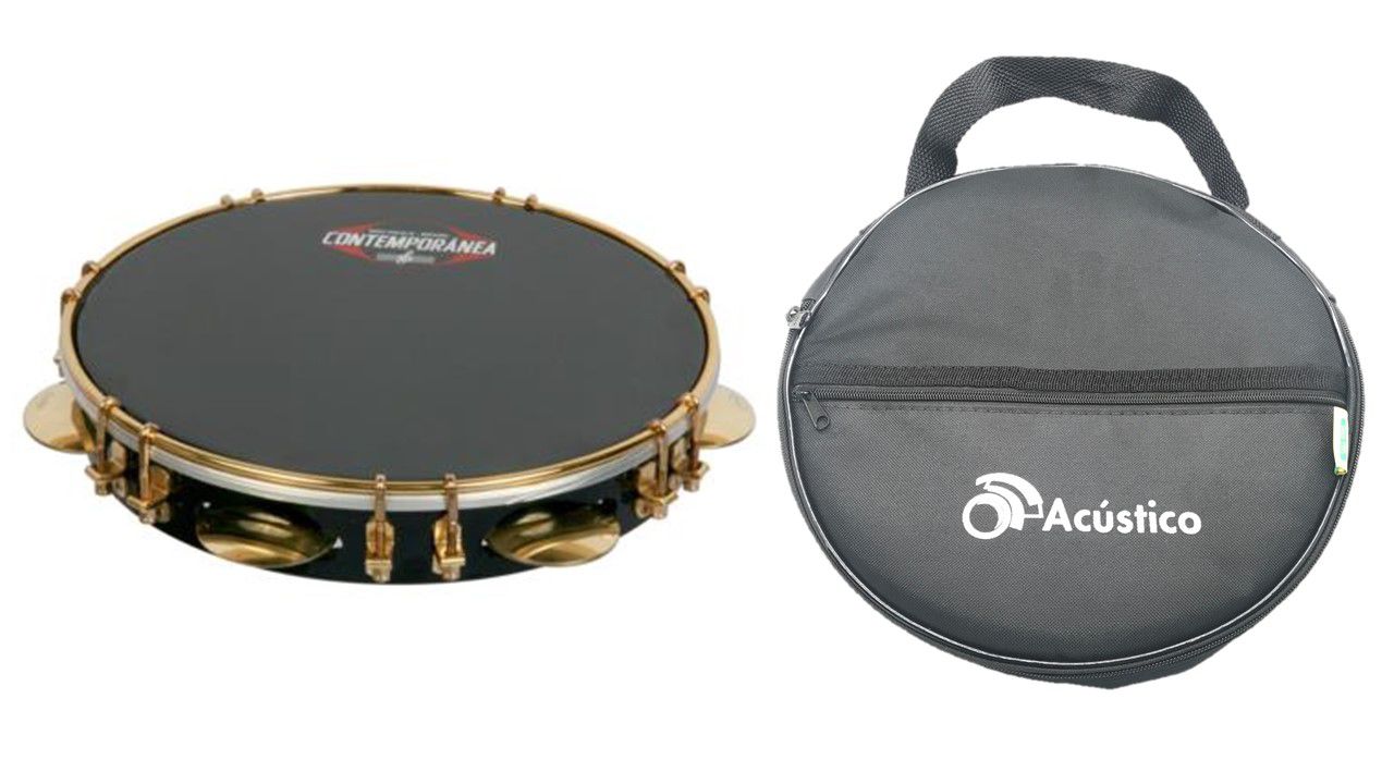 Contemporânea Pandeiro 11 Preto Tar Dupla Dourada 37ppd + Bag