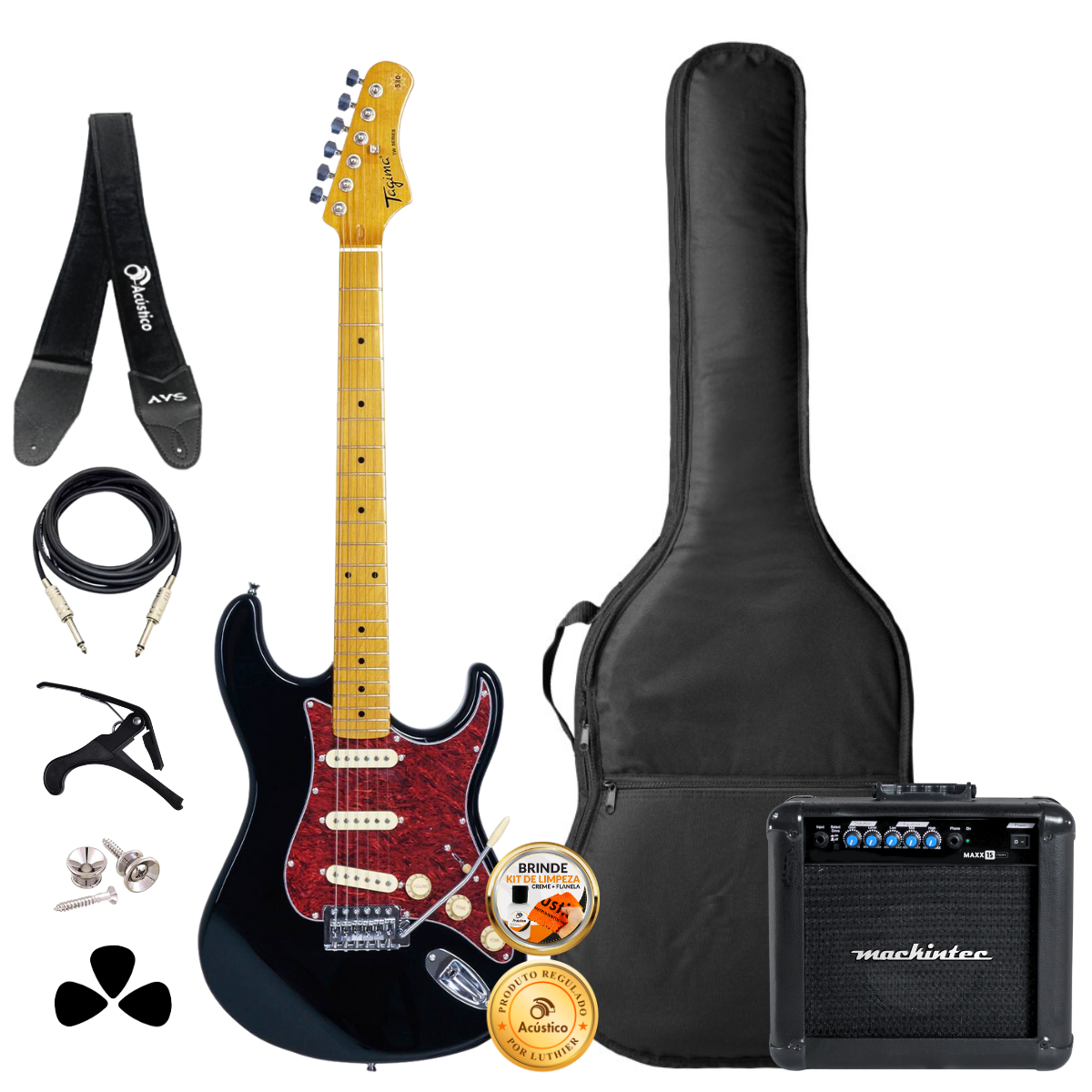 Guitarra Stratocaster Tagima TG-530 Preta Acessórios + Ampli
