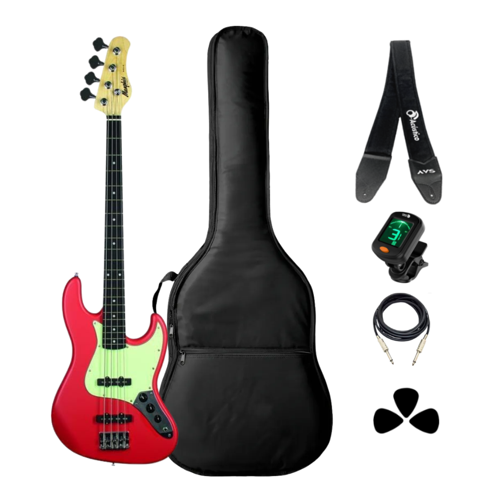 O Memphis MB-40 é a escolha ideal para o baixista que busca o clássico timbre "punch" do design Precision Bass com um excelente custo-benefício. Com o vibrante acabamento Fiesta Red, este instrumento entrega uma sonoridade encorpada e direta, característica do seu captador Split Coil, sendo perfeito para Rock, Pop, Punk e estilos que exigem uma base sólida e presente.