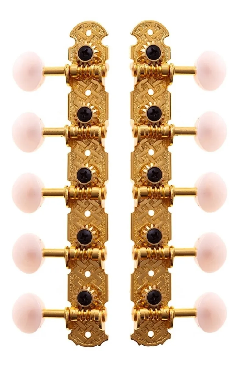 O jogo de tarraxas Rozini RA339GPF-SW é a escolha definitiva para quem busca precisão e estética refinada em sua viola. Com acabamento dourado de alta qualidade e botões estilo "madrepérola" (SW), este conjunto 5+5 é projetado especificamente para instrumentos que utilizam o sistema de pino fino.